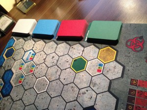 biohazard-v2-05 Plansza zawiera specjalne miejsca na karty sprzętu (każdy kolor odpowiada innemu rodzajowi obszaru)