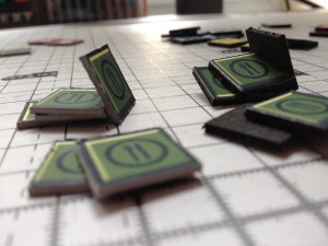 Porównanie starych dwustronnych żetonów, drukowanych na tekturze i nowych, jednostronnych, drukowanych na piance